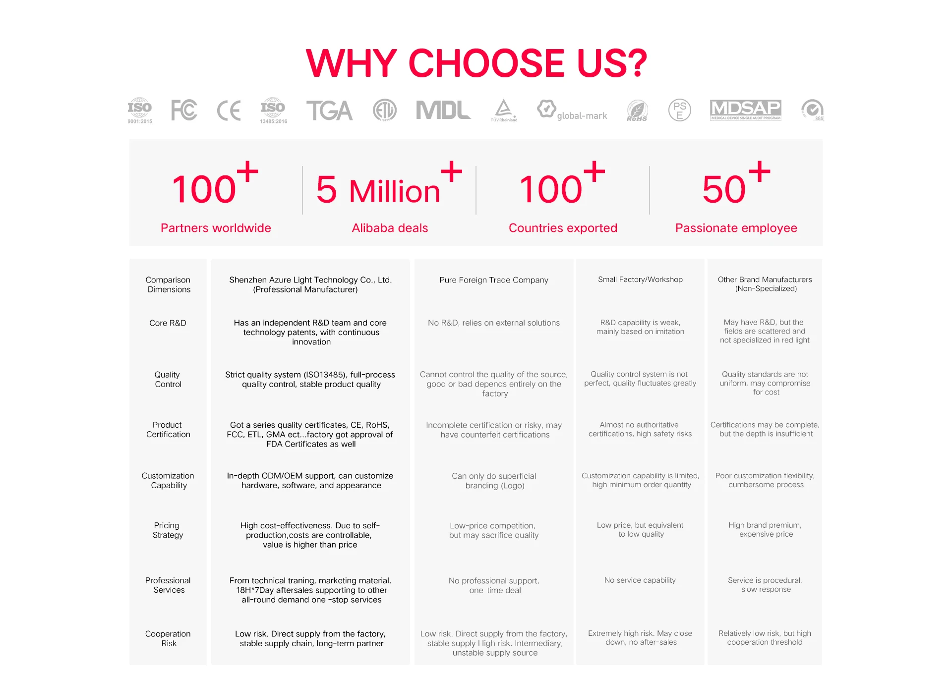 מקום 4 בזמן התגובה המהיר ביותר בקטגוריה "אדום אור טיפול פנל"Total floorspace (3,000㎡)On-site material inspectionOffline trade shows attended(2times)ODM services available